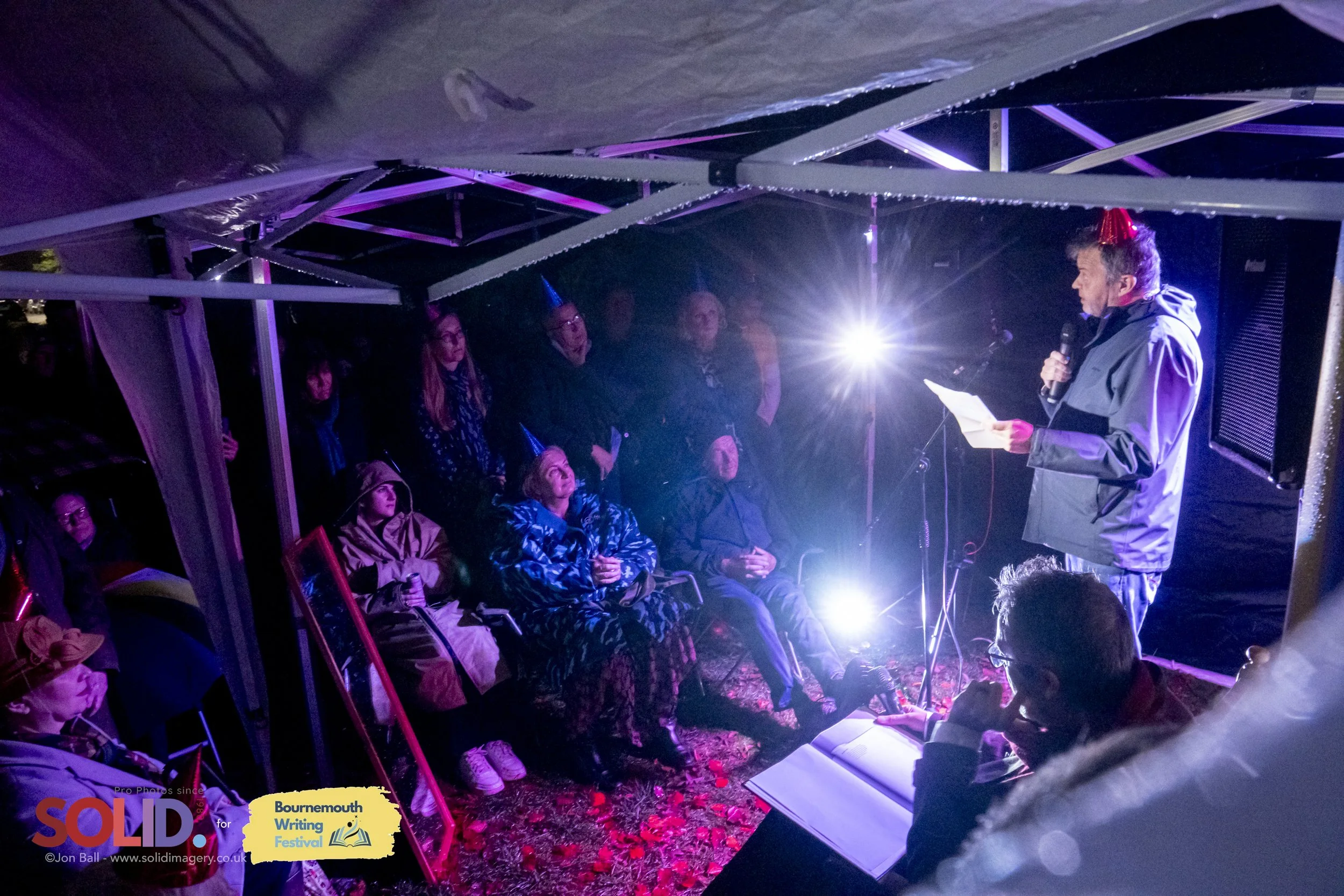 The event was put on by Dominic Wong of Bournemouth Literary Society, and the Society pulled out all of the stops to make it an evening to remember, with a multitude of gazebos, sound system, smoke machine and fire pits. The venue was chosen because Skerryvore was the actual home of Stevenson between April 1885 and August 1887.